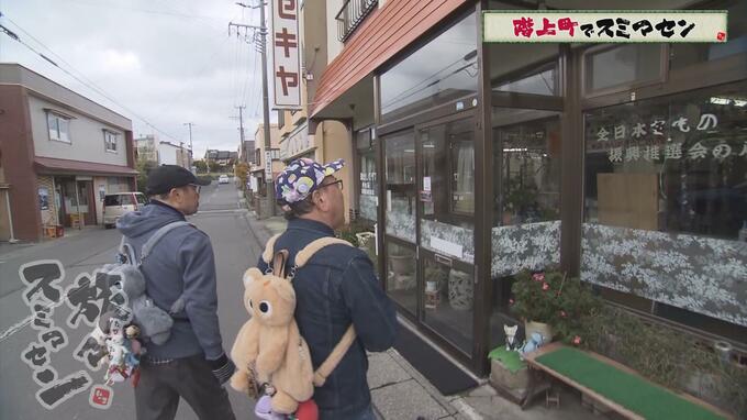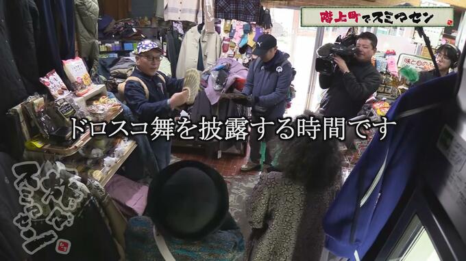 八郎さんはお菓子を購入し、買い物に来ていた方々に御裾分けします。その後は、店の商売繁盛とみなさんの健康を祈願して、おじコンビの十八番『ドロスコ舞』を披露しました。