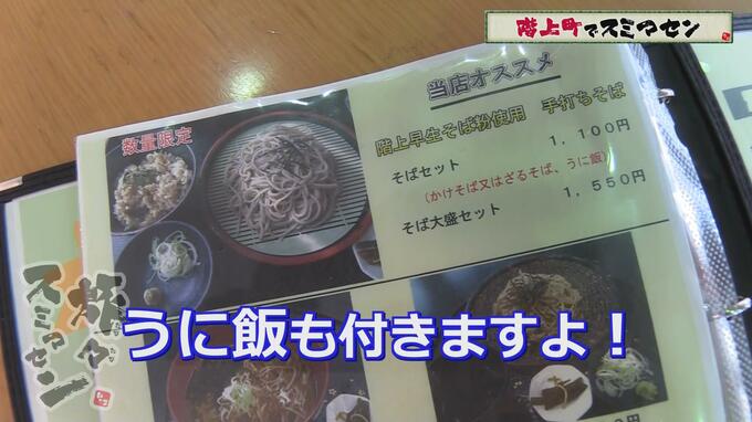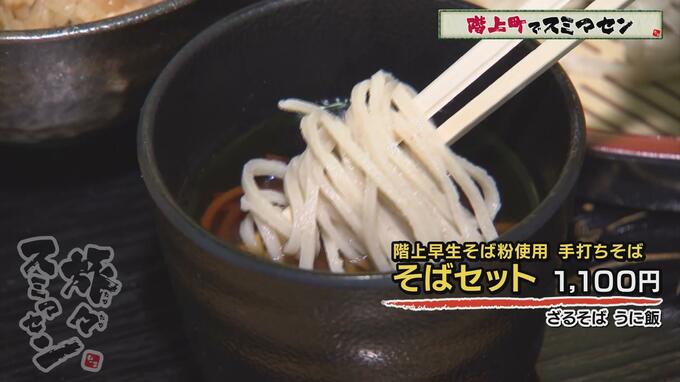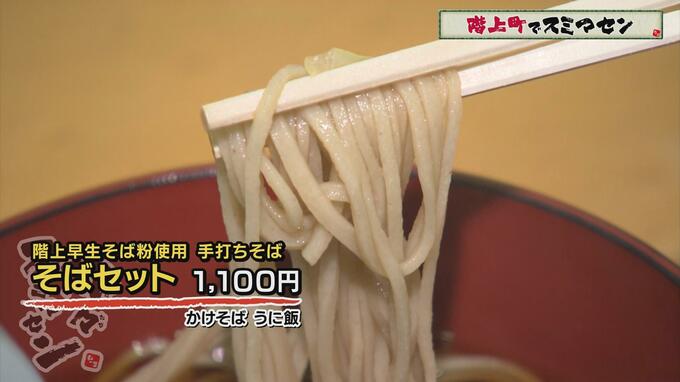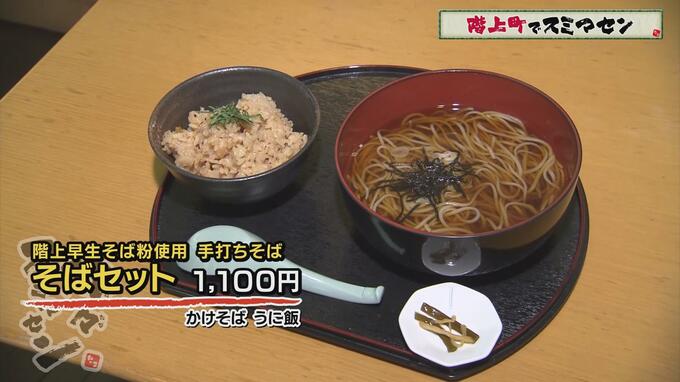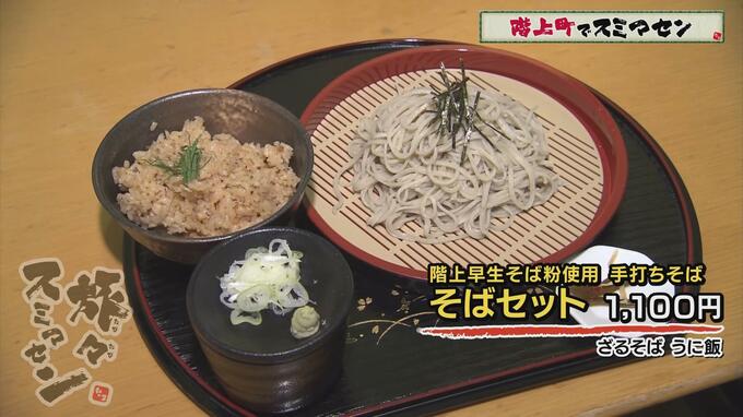 数量限定【そばセット】(1100円)を注文。このセットは、手打ちそばにうに飯が付いたお得なメニューで、かけそばかざるそばかどちらかをチョイスできます。