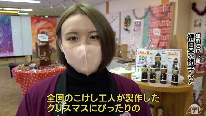 全国のこけし工人、10人によるサンタこけしが常時50体以上展示・販売されるクリスマスフェアは25日まで開かれています。