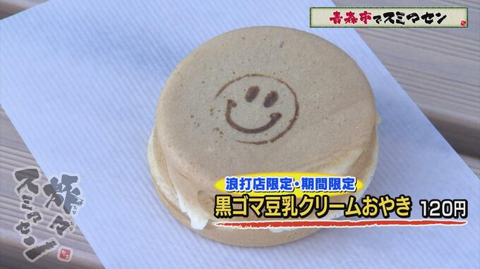 川口さんは、期間限定【黒ゴマ豆乳クリームおやき】(120円)をいただきます。