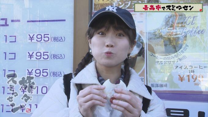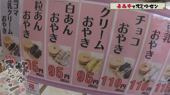 豆乳おやき、チョコおやき、クリームおやき…たくさんのメニューが並んでいます。タピオカ粉を使った皮が特徴の【もちもちおやき】(110円)も気になりますが、俵谷アナが注文したのは、期間限定の【もちもちモンブラン】(130円)。早速いただきます!
