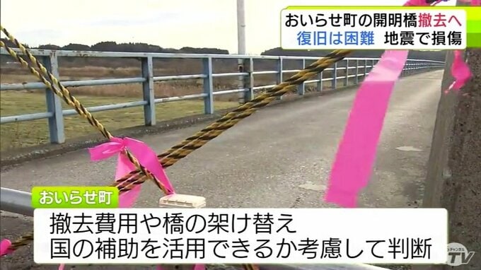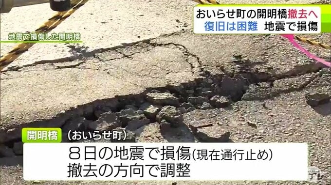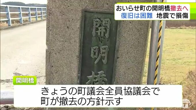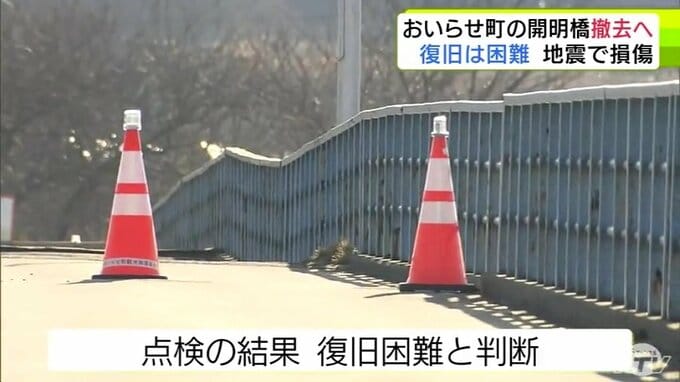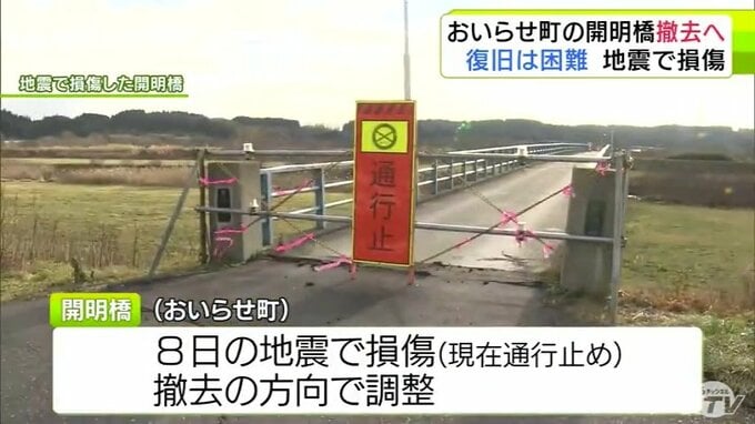 地震で損傷の橋撤去へ 欄干部分が寸断、ひび割れなどの被害 青森県おいらせ町の開明橋