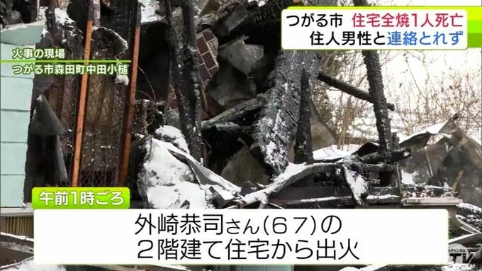 「2階まで火が出て消防が来たけど追いつかない状態で…。火が全部にまわっていた」住宅1棟が全焼 焼け跡から性別不明の1人の遺体発見 青森県つがる市