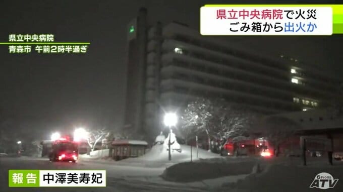青森県立中央病院で5日未明に火事 地下1階の放射線技師の控え室でソファや部屋の一部が焼ける 外来診療への影響なし