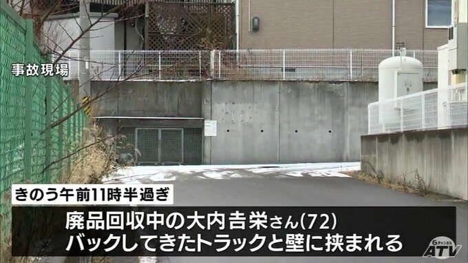 バックしてきたトラックと壁に挟まれ… 廃品回収をしていた72歳の男性が意識不明の重体に 肋骨を折るなどの大けが 青森県八戸市