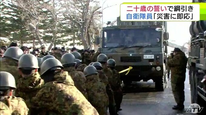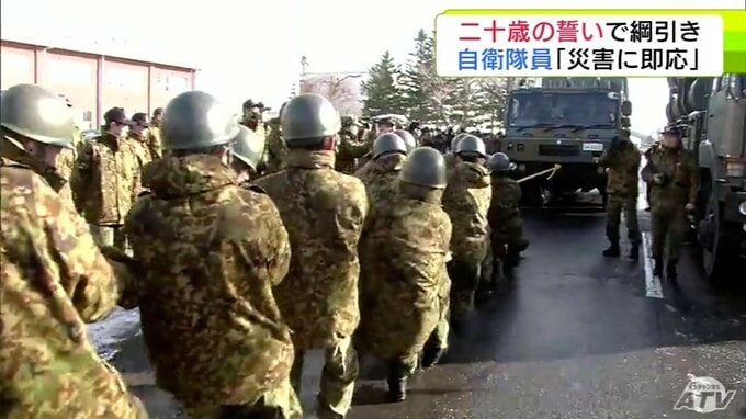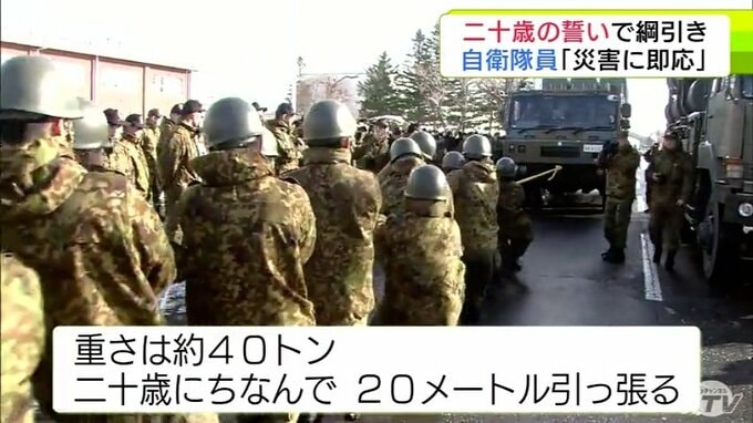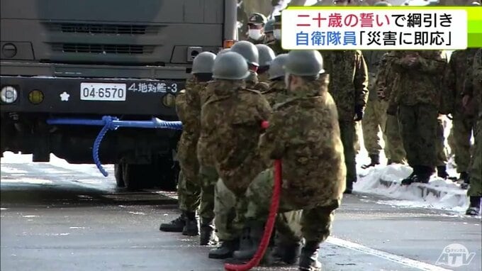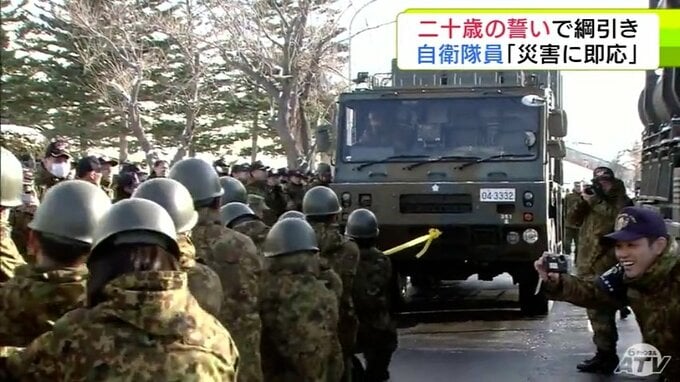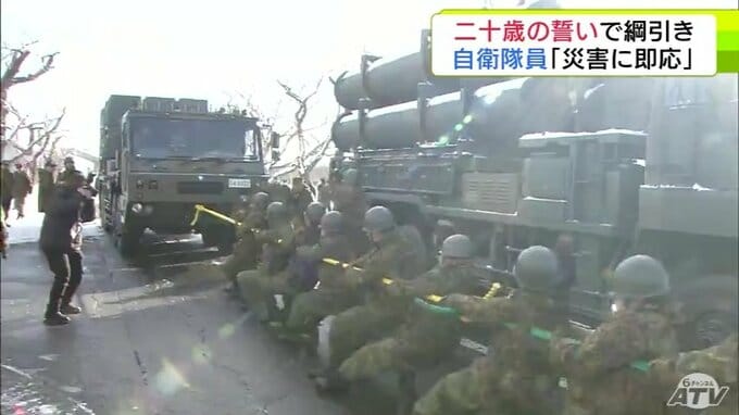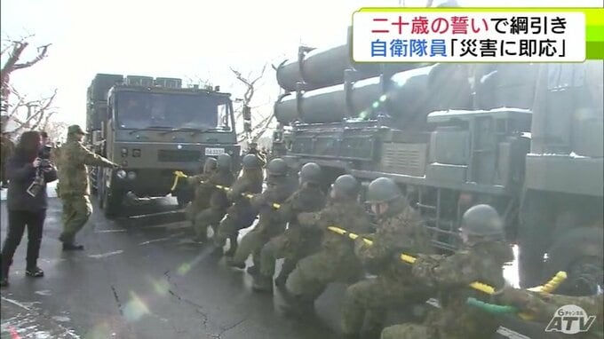 重さ約40トンのミサイル発射機と綱引き!? 陸上自衛隊八戸駐屯地での「二十歳の誓い」には独特な行事が目白押し 自衛隊員としての決意を力強く宣言
