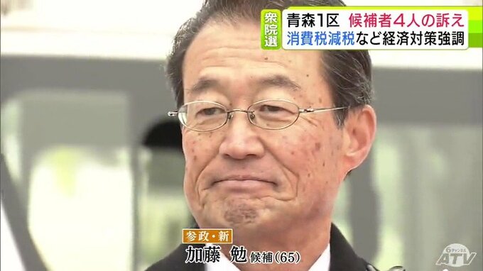 参政党の新人・加藤勉 氏(65)は、青森駅前での第一声で消費減税や一次産業で働く人への収入保障などを訴えました。