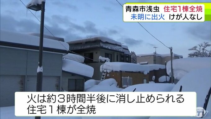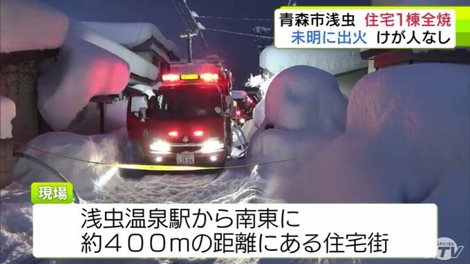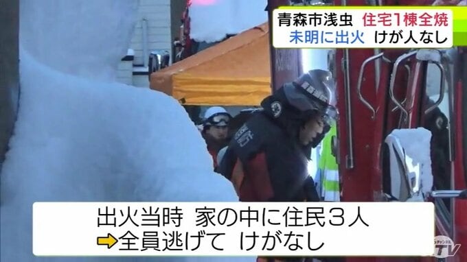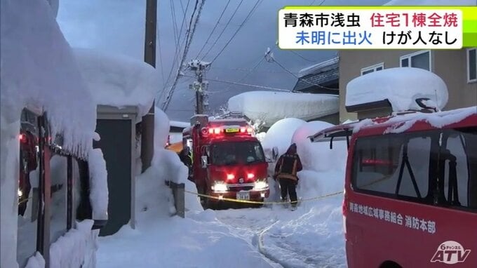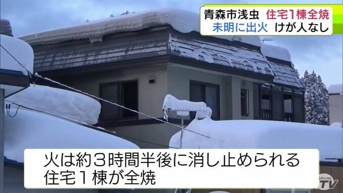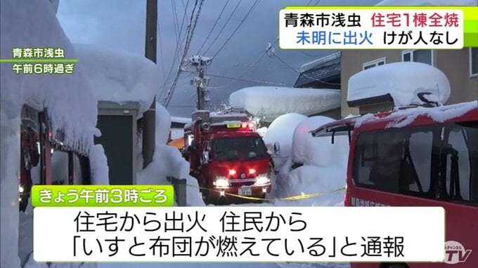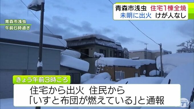「いすと布団が燃えている」青森市浅虫で住宅1棟が全焼の火事 住民3人は全員逃げてけがなし