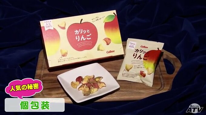 主力品種の「ふじ」を使ったドライフルーツで、サクサクとした食感が特徴だといいます。コロナ禍になってから需要が高い個包装となっていて、小分けしやすいことも人気の理由です。