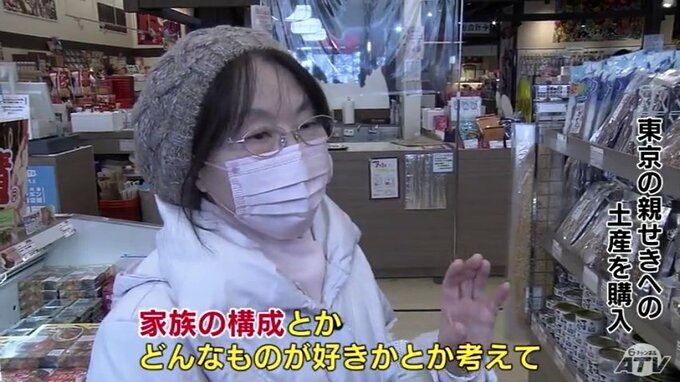 取材したのは、JR新青森駅の1階にある北彩館(ほくさいかん)です。こちらでは、県内各地の土産品を取り揃えています。買い物中の人たちにどんな品を選ぶか聞いてみると…