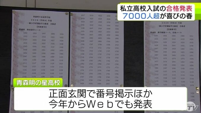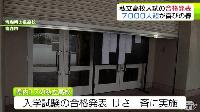 青森県内の私立高校で入学試験の合格発表 合格率は99.4% 17の私立高校で計7000人余が合格