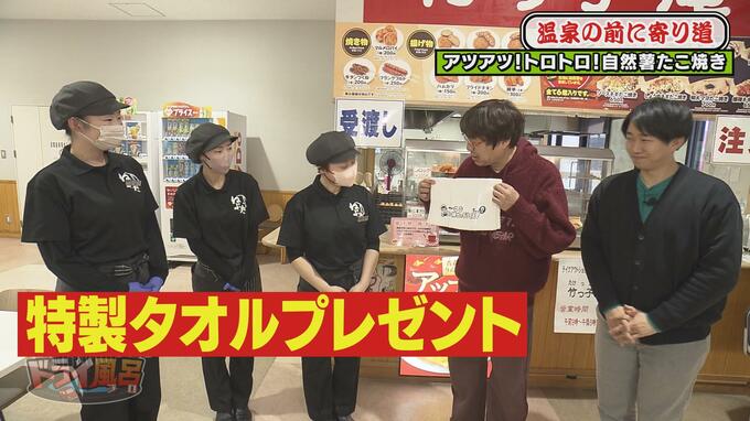 協力してくださった方々へ特製タオルをプレゼントし、いよいよ温泉へ!