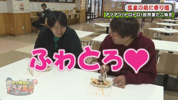 自然薯を使ったタコ焼きが販売されています。タコ焼きの生地に自然薯を練り込んでいて、トッピングのバリエーションも豊富です。大阪出身の新井アナは「たこ焼きはいっぱい食べたことありますが自然薯入りは初めて」と新鮮な様子。