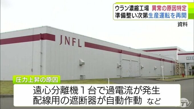 ウラン濃縮工場 遠心分離機の異常原因は過電流の発生などと特定 日本原燃は準備が整い次第 生産運転を再開へ 青森県六ケ所村