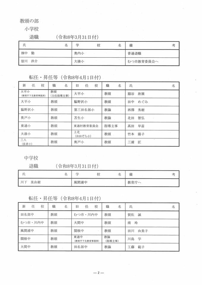 ATVの注目記事まとめ! 青森県教職員人事異動2026 「あの先生どこに行ったんだべ?」 小学校・中学校(下北管内) 一覧【名簿全掲載】 2026年3月18日(水) 17:00 国内 青森県 教職員人事異動一覧2026 【小学校・中学校(下北管内)】教頭の部 【記事を最初から読む】