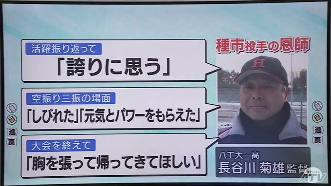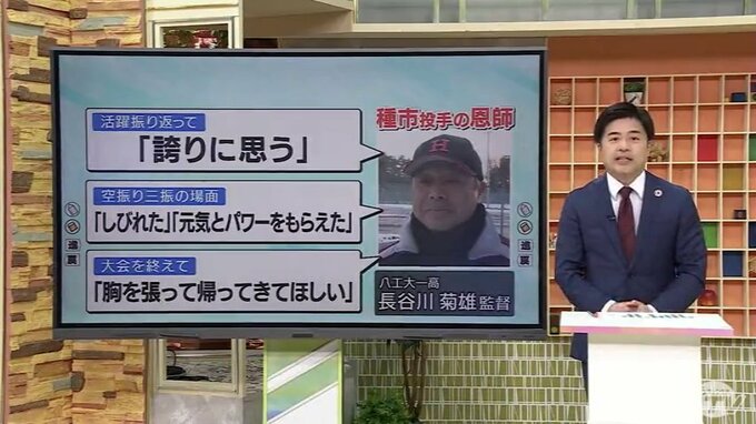 種市投手の母校・八戸工大一高の恩師・長谷川菊雄 監督は、種市投手の活躍を振り返り「世界の大舞台で堂々と国を背負って投げてくれた。誇りに思う」と話しました。