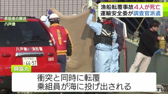 衝突事故が起きたのは、17日午前1時過ぎ、三沢漁港の北東およそ20キロの沖合です。興富丸は衝突と同時に転覆、乗組員は海に投げ出されました。