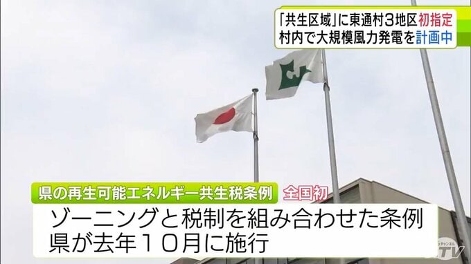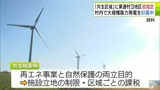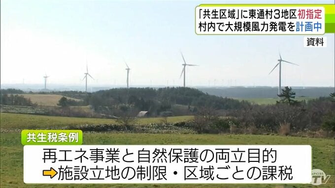 「再生可能エネルギー共生税条例」で東通村の3地区が条例施行後で初の「共生区域」に指定 村内では大規模な風力発電事業が計画中 青森県 2026年3月24日(火) 16:25 国内 【写真を見る】東通村 ※「NEWS DIG」のアプリやサイト以外でご覧の方は、関連リンクから画像をご確認いただけます。