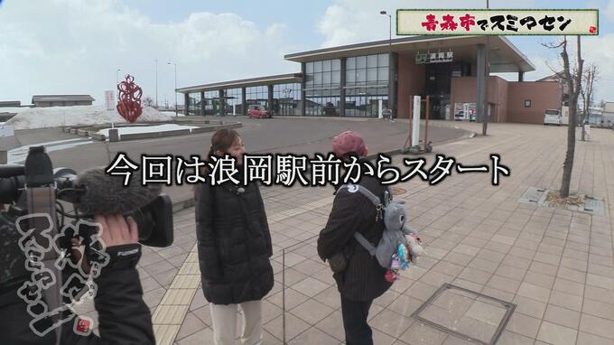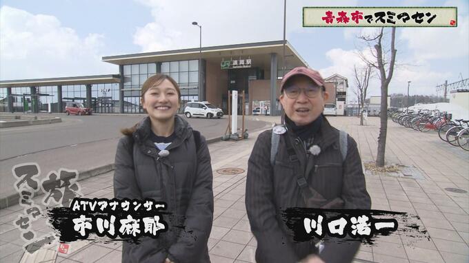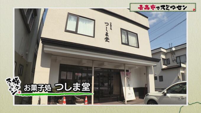 JR浪岡駅前からスタートした2人。歩き始めてすぐ目に飛び込んできたのは、和菓子店の看板でした。