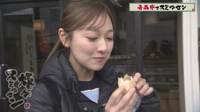 「りんごの餡がたっぷり!ちょっと果肉も入ってるんだ。シャキシャキっていう食感もありますね。甘い香りが口に広がります」