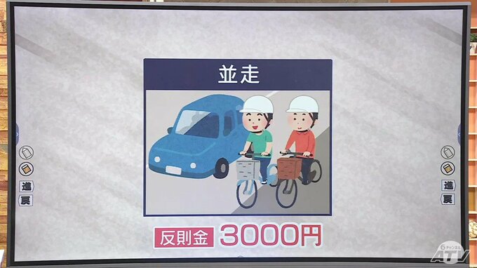 そして、反則金3000円の反則行為については、自転車2台以上での並走などがあてはまるとされています。