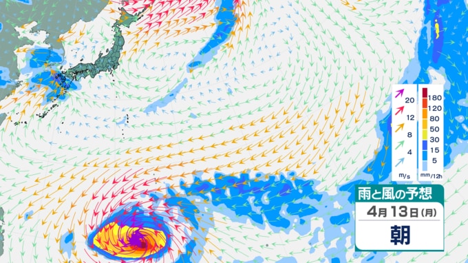 【台風情報】12日には「強い勢力」に? 発生確認の熱帯低気圧a=“台風のたまご” 10日にも台風にまで発達か 日本への影響は? 雨・風シミュレーション・最新情報あり(4月19日(日)まで) 2026年4月9日(木) 15:45 国内 【4月13日】大雨・風の予想シミュレーション【11日先まであり】 【雨・風の予想シミュレーションをまとめて見る】 (4月9日~10日、11日~12日、13日~14日、15~16日、17日~18日、19日) 【この記事を最初から読む】
