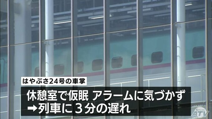 車掌寝坊で東北新幹線に遅れ 新青森駅発の上り 2026年4月19日(日) 15:43 国内 18日午後、東北新幹線の車掌が休憩室で寝坊し、新青森駅発の上りの列車に3分の遅れが出ました。遅れが出たのは、18日午後1時52分、新青森駅発の東北新幹線の上り、はやぶさ24号です。JR東日本によりますと、休憩室…