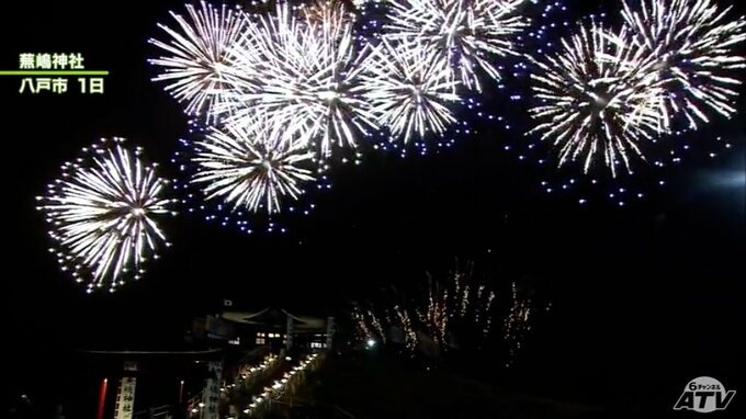 年越しにあわせて花火が打ち上げられた八戸市の蕪嶋神社では。