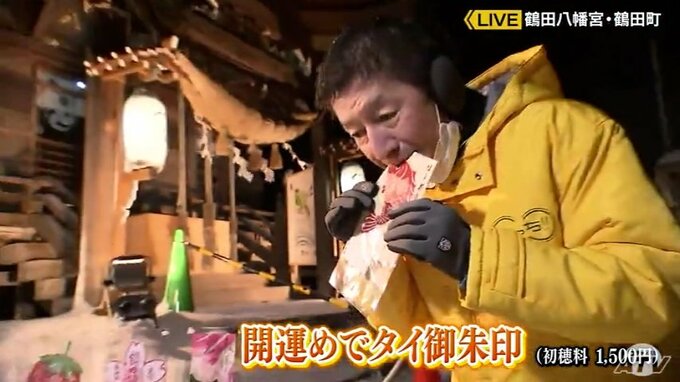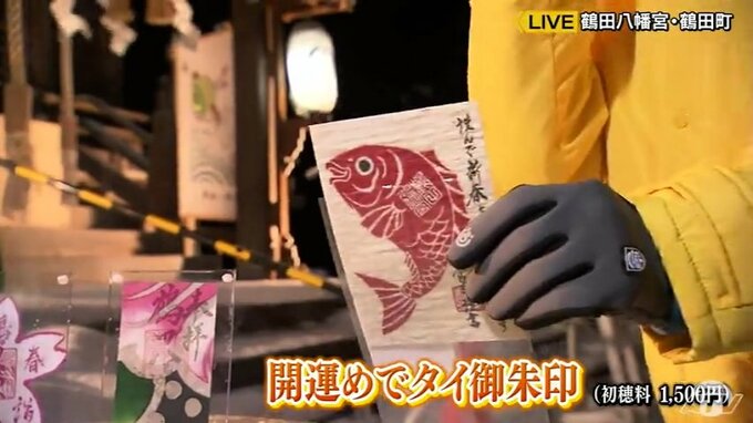 また、毎年1月だけは「食べられる御朱印」が登場し、2023年は「開運めでタイ御朱印」。魚肉シートになっているのでまるごと食べられます。