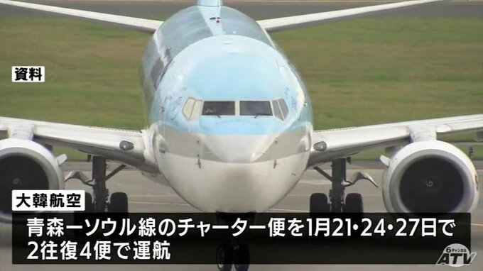 青森-ソウル線 1月21日から2往復のチャーター便運航 青森空港 約2年10か月ぶりに国際線再開 2023年1月13日(金) 11:16 国内 新型コロナウイルスの影響で運休している青森ーソウル線について、大韓航空は1月21日からチャーター便を運航することを発表しました。約2年10か月ぶりに青森空港で国際便が再開されます。大韓航空によりますと青森…