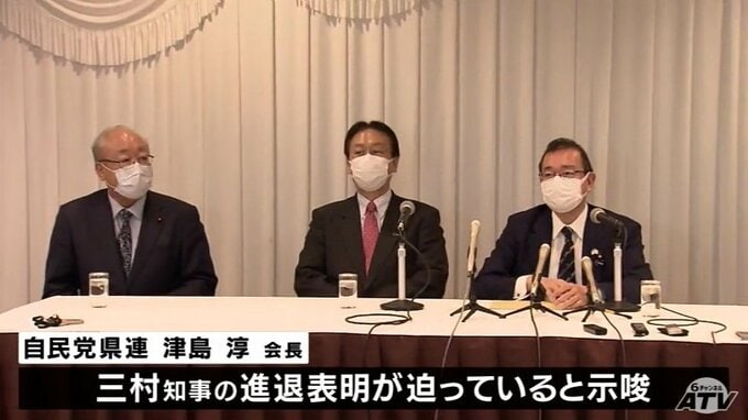 6月任期満了の青森県知事選「進展あった」自民党県連・津島会長 現職・三村知事の進退表明迫ると示唆 2023年1月14日(土) 18:07 国内 6月の任期満了に伴う青森県知事選挙をめぐり、自民党県連の津島淳会長は現職・三村申吾知事の進退の確認について、「進展があった」と明らかにしました。※自民党県連 津島淳会長「進展はあると申し上げておきま…