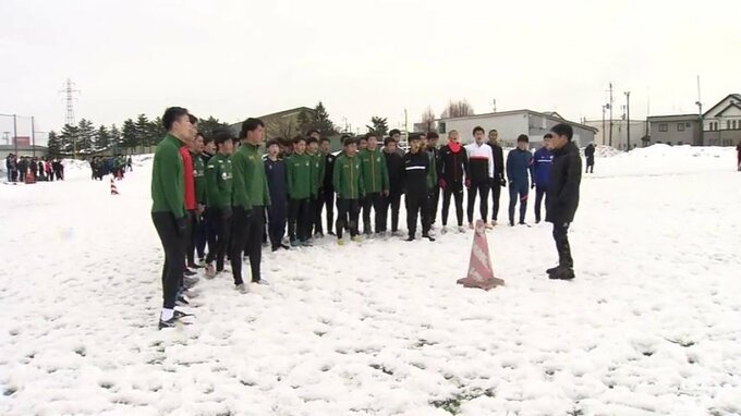 全国選手権の準々決勝で敗れてから10日。白い吐息を吐きながら青森山田の選手たちが汗を流しています。