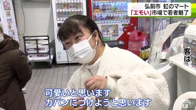 ※客は「嬉しいです、青森大好きなのでやりたいなと思っていました。ポーチとかに着けるかな」「可愛いと思います。かばんにつけようと思います」「珍しいので弘前らしくて良いですよね」