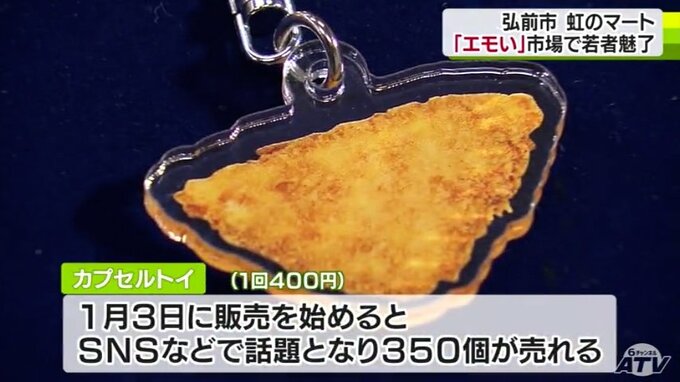 ご当地カプセルトイに入っているのは、いがめんちや津軽そばを始め5種類のキーホルダーで市場で販売している食品などをリアルに再現。SNSなどで話題となり販売開始から2週間あまりで約350個が売れました。
