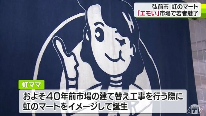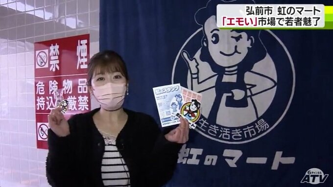 ※小野寺キャスター「市場のオリジナルキャラクター虹ママです。いま力を入れているのがこちら。虹ママのステッカーやスタンプ帳などグッズです」