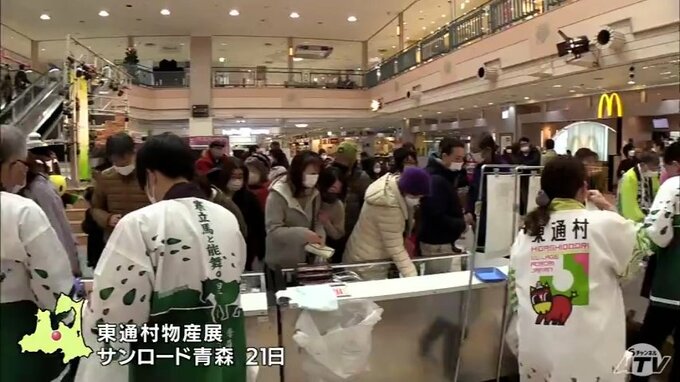 ブランド牛「東通牛」やウニ・アワビなどの海の幸も 東通村自慢の食材が一堂に 青森市で物産展 2023年1月22日(日) 11:44 国内 東通村のブランド牛や海の幸を集めた物産展が青森県青森市で開かれ、多くの買い物客でにぎわっています。「東通村物産展」は、青森市のサンロード青森で開かれ、アワビやホタテ、ブランド牛の「東通牛」など村自慢…
