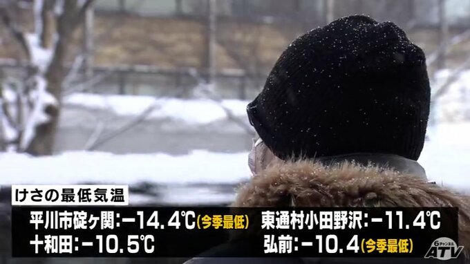 連日の真冬日 平川市碇ヶ関で今季最低-14.4℃ 2023年1月27日(金) 12:10 国内 青森県内は27日朝、冷え込みが厳しく、平川市碇ヶ関で今シーズン最も低いマイナス14.4℃となるなど、けさの最低気温は5つの観測地点でマイナス10℃を下回りました。青森県内は冬型の気圧配置が緩んではいますが、…