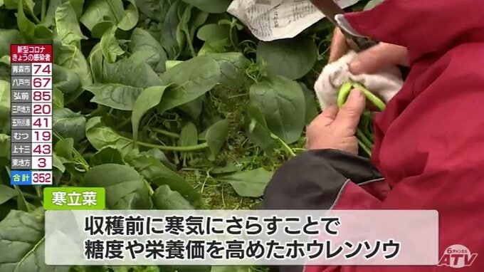 極寒で3日ぶりの収穫も良い効果も 東通村の寒締めホウレンソウ「寒立菜」 2023年1月27日(金) 19:39 国内 青森県東通村のブランド野菜=寒立菜(かんだちな)の収穫が盛んに行われています。寒いこの時期が旬ですが、あまりの寒さに栽培しているビニールハウスの中でも土が凍ってしまったため、3日ぶりの収穫となりました…