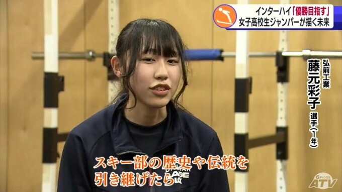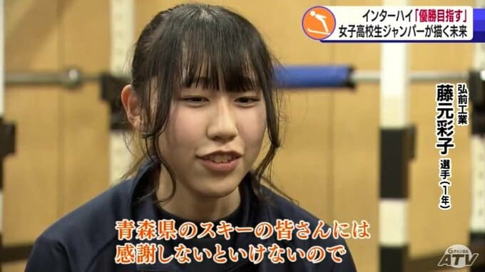 弘前工業高校の藤元彩子(ふじもと・さいこ)さん。スキーのジャンプ競技で青森県内の高校生では唯一の女子選手として8日、初のインターハイに臨みます。