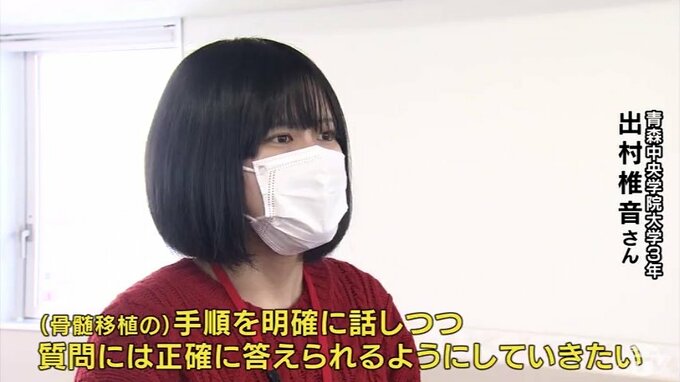「(骨髄移植の)手順を明確に話しつつ、質問には正確に答えられるようにしていきたい。(後輩の)授業や就活が忙しくならないうちに継承していきたいと思っています」