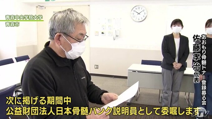 骨髄バンクの説明員となったのは青森中央学院大学・看護学部の3年生、出村椎音(でむら・しおん)さんです。あおもり骨髄ドナー登録募る会の佐藤孝治(さとう・こうじ)代表の指導で2022年から研修を受け、2月1日付で認定されました。