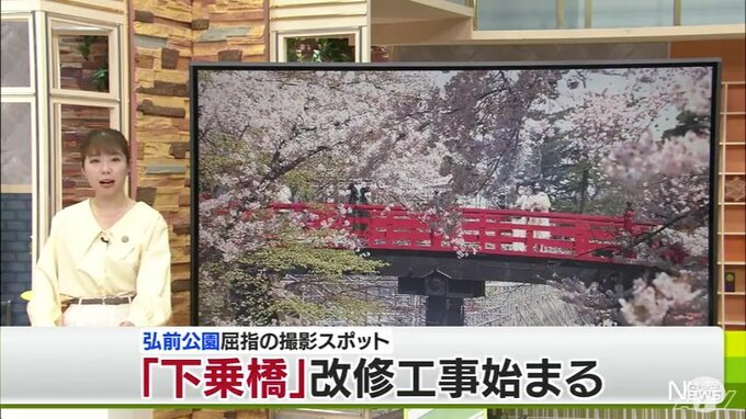 こちらは弘前公園の本丸近くにある「下乗橋(げじょうばし)」付近の春の様子です。満開の桜を撮影できる場所として多くの人が詰めかけています。フォトスポットとして人気を集める橋の改修工事が20日始まりました。