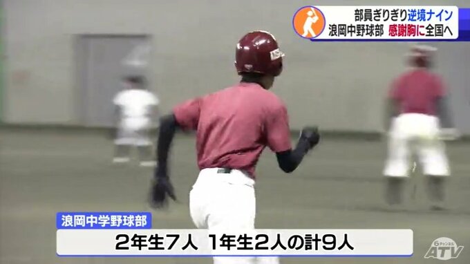 2年生7人、1年生2人の合わせて9人。文字通り「浪岡中ナイン」です。他校との合同練習で実戦形式のメニューでは、選手たちが守備に就くと…。ベンチには監督しかいません。