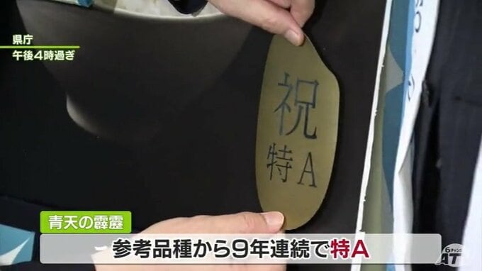 また、「青天の霹靂」も参考品種から数えて9年連続で特Aを獲得、春先の低温や大雨の影響などを乗り越えて県産米の2つの品種が高く評価されました。