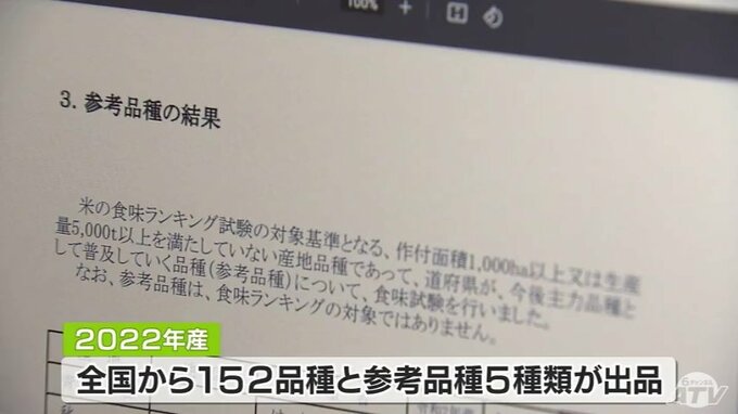 米の食味ランキングは日本穀物検定協会が味や香り、粘りなど米の特徴を審査して、5段階で評価しています。今回は全国から152種類と話題性や今後の生産普及が期待される「参考品種」5種類が出品されました。