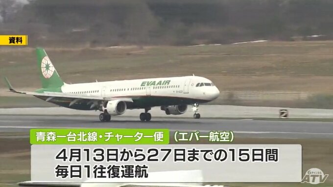 青森-台北線のチャーター便 4月13日から27日まで毎日1往復の運航決定 定期便の運休から3年2か月 2023年3月1日(水) 18:05 国内 青森と台湾の台北(たいぺい)を結ぶチャーター便の運航が4月13日から15日間、毎日1往復と決まりました。これは1日の青森県議会の一般質問で三村申吾知事が明らかにしました。台湾のエバー航空の青森ー台北線・チ…
