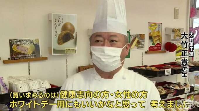 「(買い求めるのは)健康志向の方であったりあとは女性の方。それでホワイトデー用にもいいかなと思って考えました。卵自体が出荷制限などこれからも出てくるとやはり色んなパターンを考えていかなければならないのでそういう中で考えています」