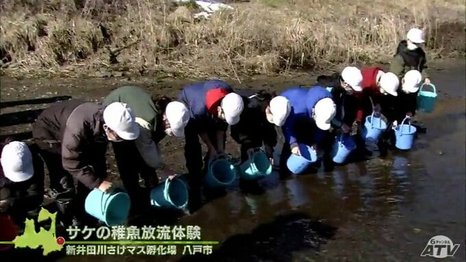 八戸市の児童たちがサケの稚魚約1万匹を川に放流し、命や自然の大切さを学びました。