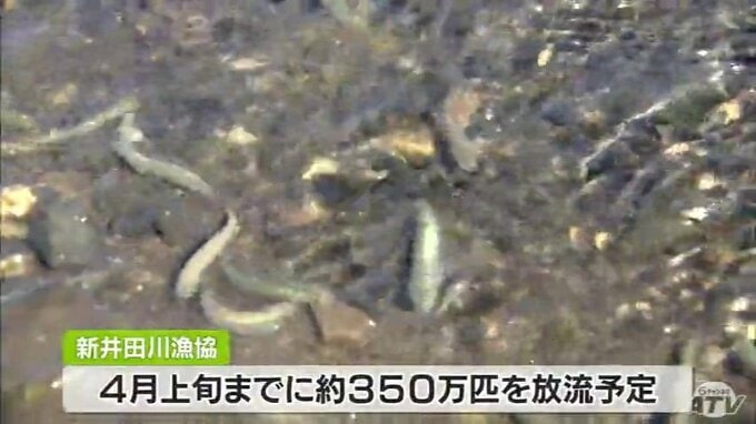 新井田川漁協では2月から放流作業を始めていて、4月上旬までに約350万匹の稚魚を放流する予定です。