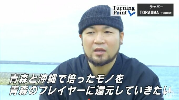 「自分のラップを通して、痛みや苦しみや葛藤など悩める人の力になれたらうれしい。青森で人間性を培って沖縄で音楽性を学んで、自分が得たものを青森のプレイヤーに音楽として還元していきたい」